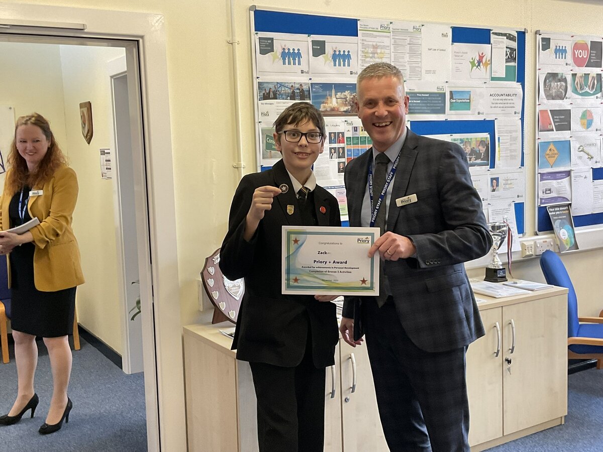 Priory+ is rewarded with a star badge, certificates for pupils' Record of Achievement and Achievement Points towards trips.
